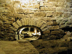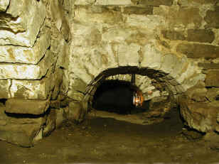 View taken in the first waiting room just inside the first arch. View shows two more arches that connect to the tunnel that led to another mill, down-stream. At night when the water was shut off, the tunnel was clear of water and escape was possible in either direction.
